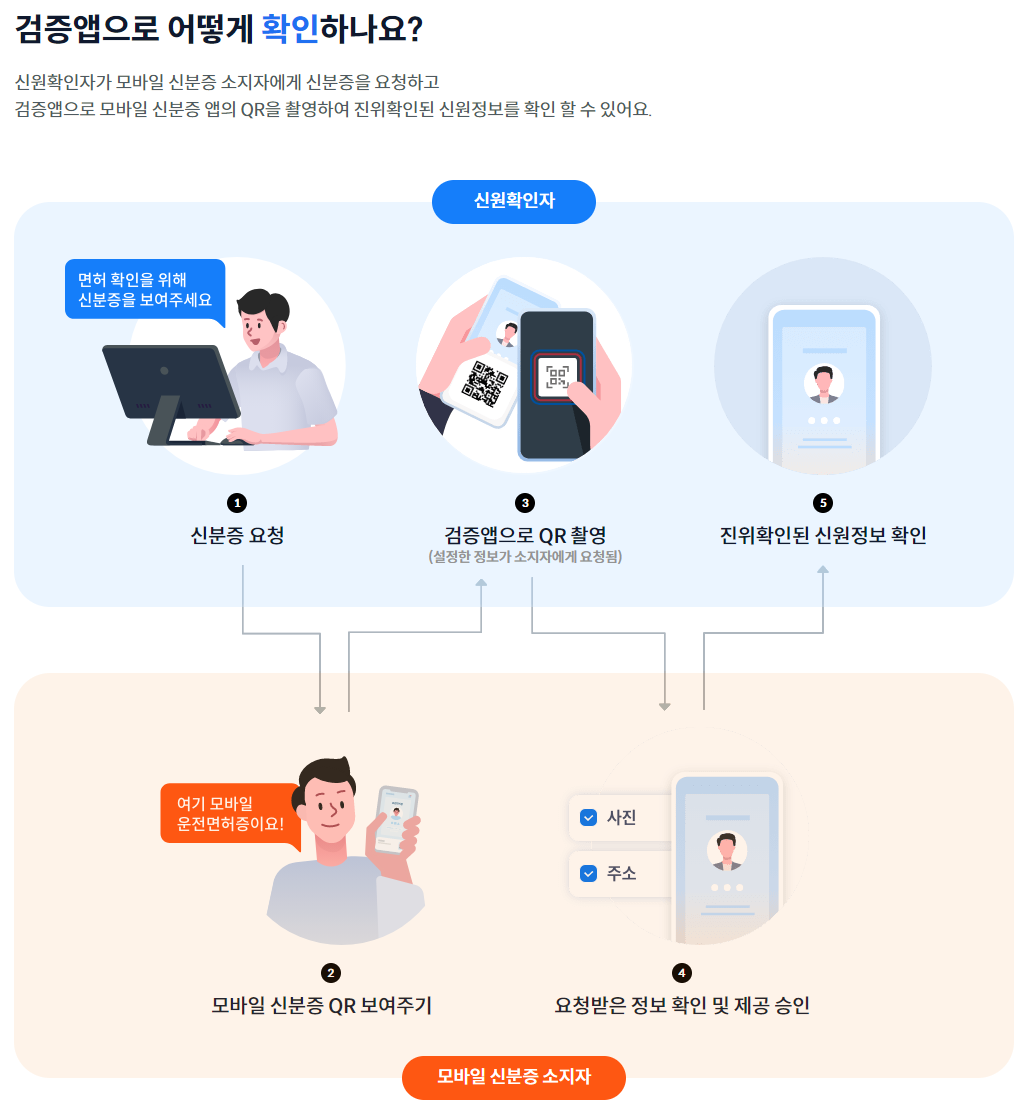 -QR코드 인증: 모바일 주민등록증 앱에서 생성되는 QR코드를 통해 간편하게 본인 인증